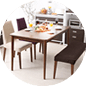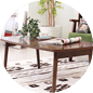 テレビボードをはじめとして、テーブル、収納、デスクと統一感を出しやすい品揃え。